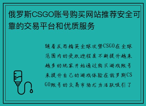 俄罗斯CSGO账号购买网站推荐安全可靠的交易平台和优质服务